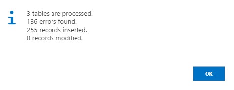 Once completed, system will confirm you the status of update. there are Few records which were not imported due to secondary master was not available. You can check the details after clicking ok in above screen.